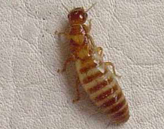 Blanco cremoso con la cabeza ligeramente más oscura. Sin presencia de ojos ni ocelos (ojos simples). Ausencia de alas.